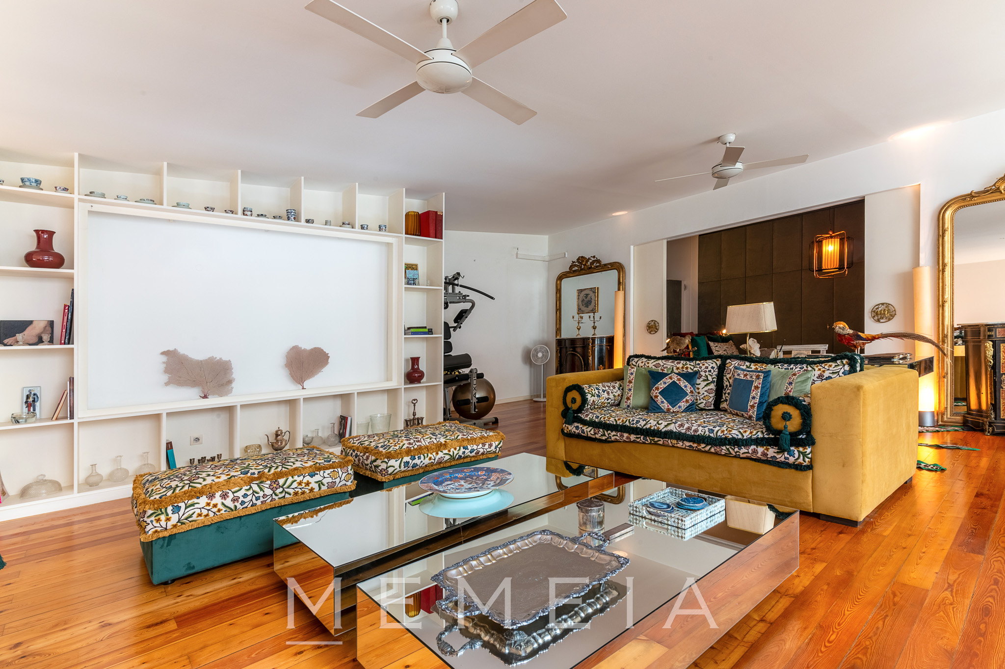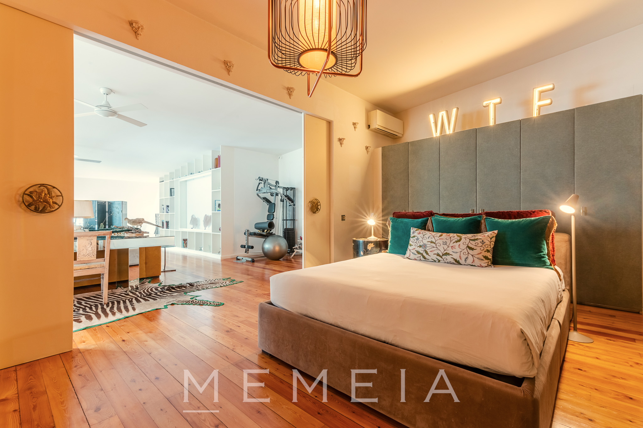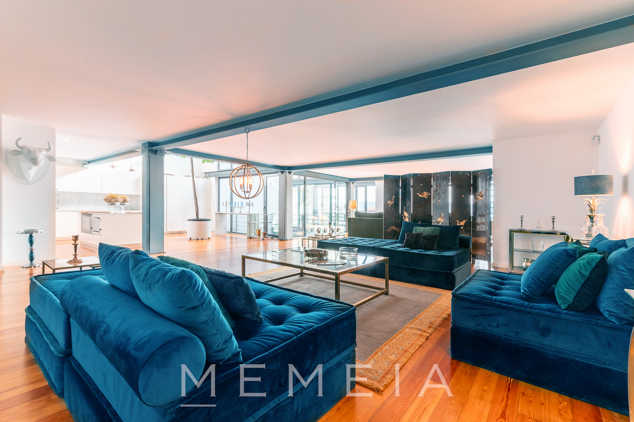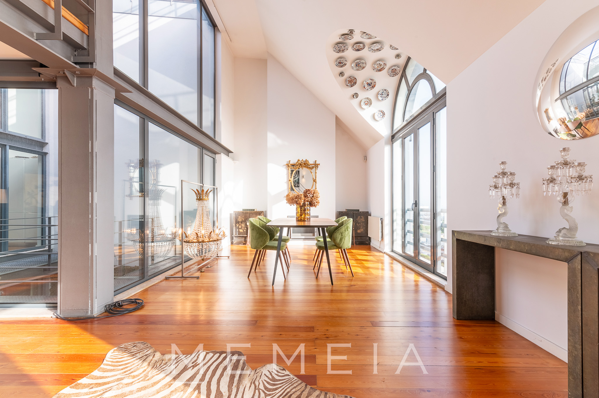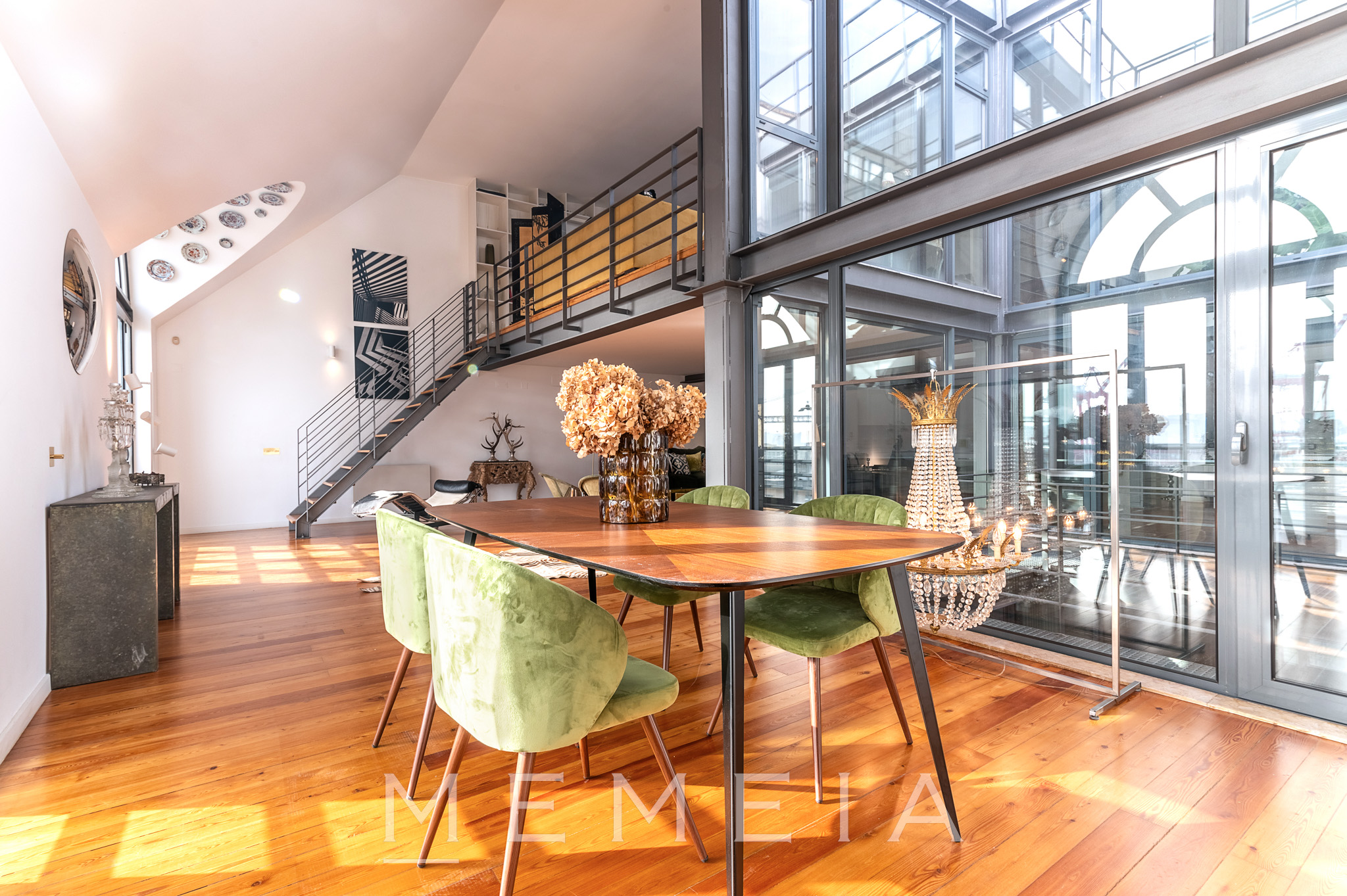 Loft inserido num antigo edifício industrial na Avenida 24 de Julho, projetado por Gustave Eiffel e convertido em condomínio de luxo em 2004. Com vista panorâmica sobre o Tejo, o espaço inclui dois lugares de estacionamento, arrecadação e potencial para transformar-se em dois quartos. A luz atravessa o saguão envidraçado, iluminando toda a área social. A fachada preserva os azulejos Arte Nova das cerâmicas Viúva Lamego, mantendo o caráter original da década de 1920.