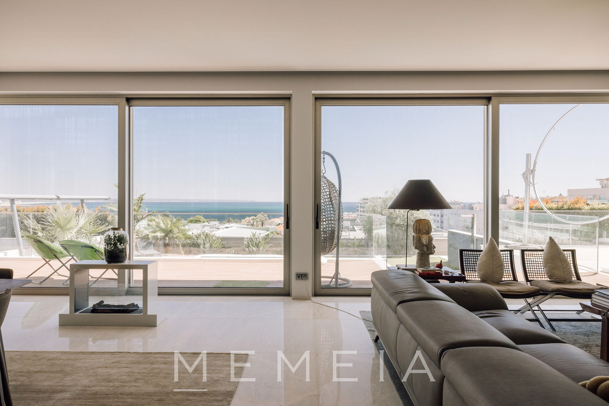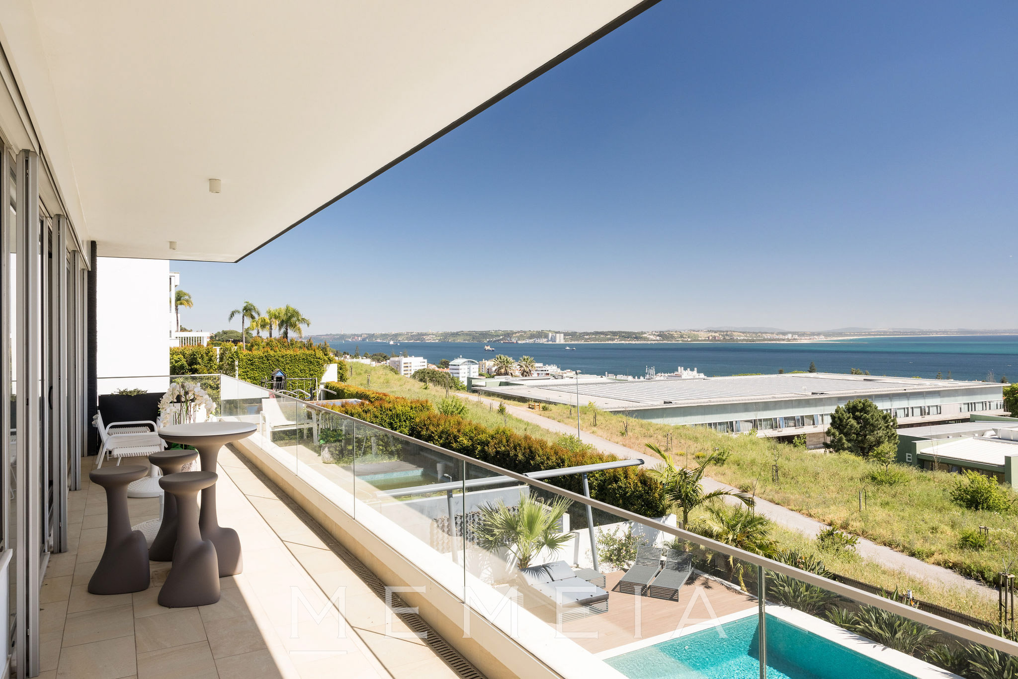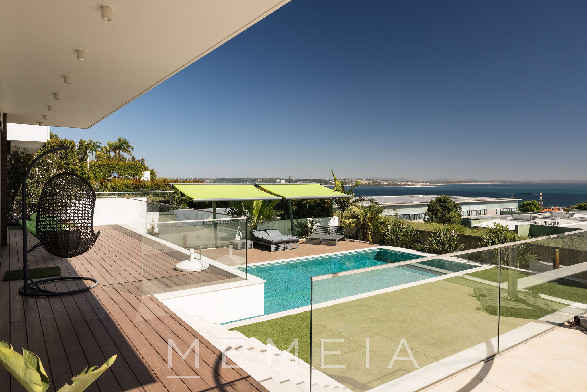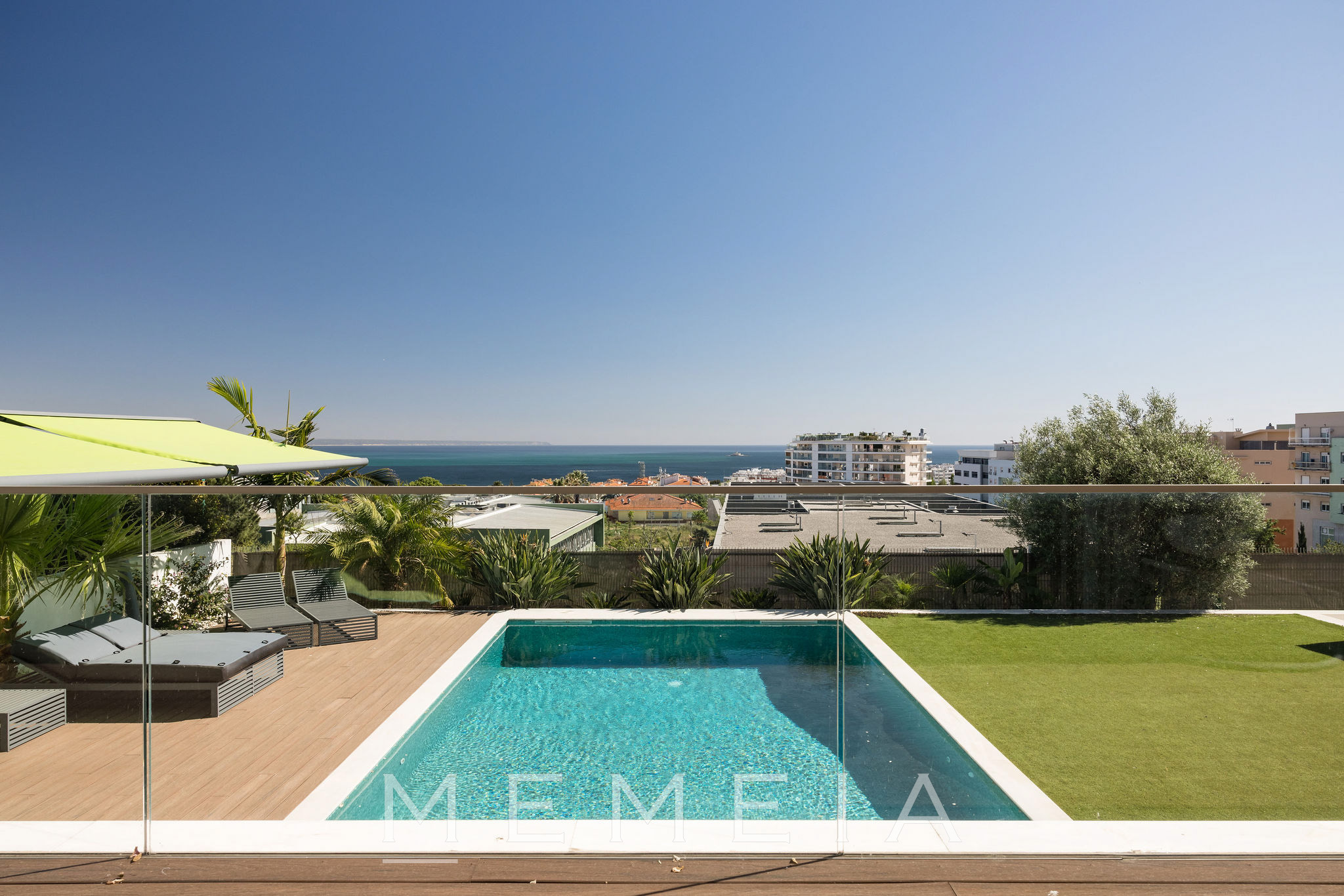 Residência de três pisos com vista para o mar, localizada em Oeiras, a vinte minutos do centro de Lisboa. No piso térreo, a sala de estar e a cozinha em conceito aberto têm acesso direto ao jardim, que dispõe de piscina aquecida, área de churrasqueira e forno a lenha, com áreas bem distribuídas e espaços de lazer integrados ao exterior. As suítes ficam no piso superior, todas com varandas e vista para o mar, incluindo o Farol do Bugio e o Cabo Espichel. No piso inferior, encontram-se a garagem, sala de cinema, academia e adega, compondo uma área dedicada ao lazer e ao apoio residencial. Os interiores utilizam materiais nobres, como mármore de Estremoz e madeira de nogueira americana, garantindo durabilidade e acabamento de qualidade.