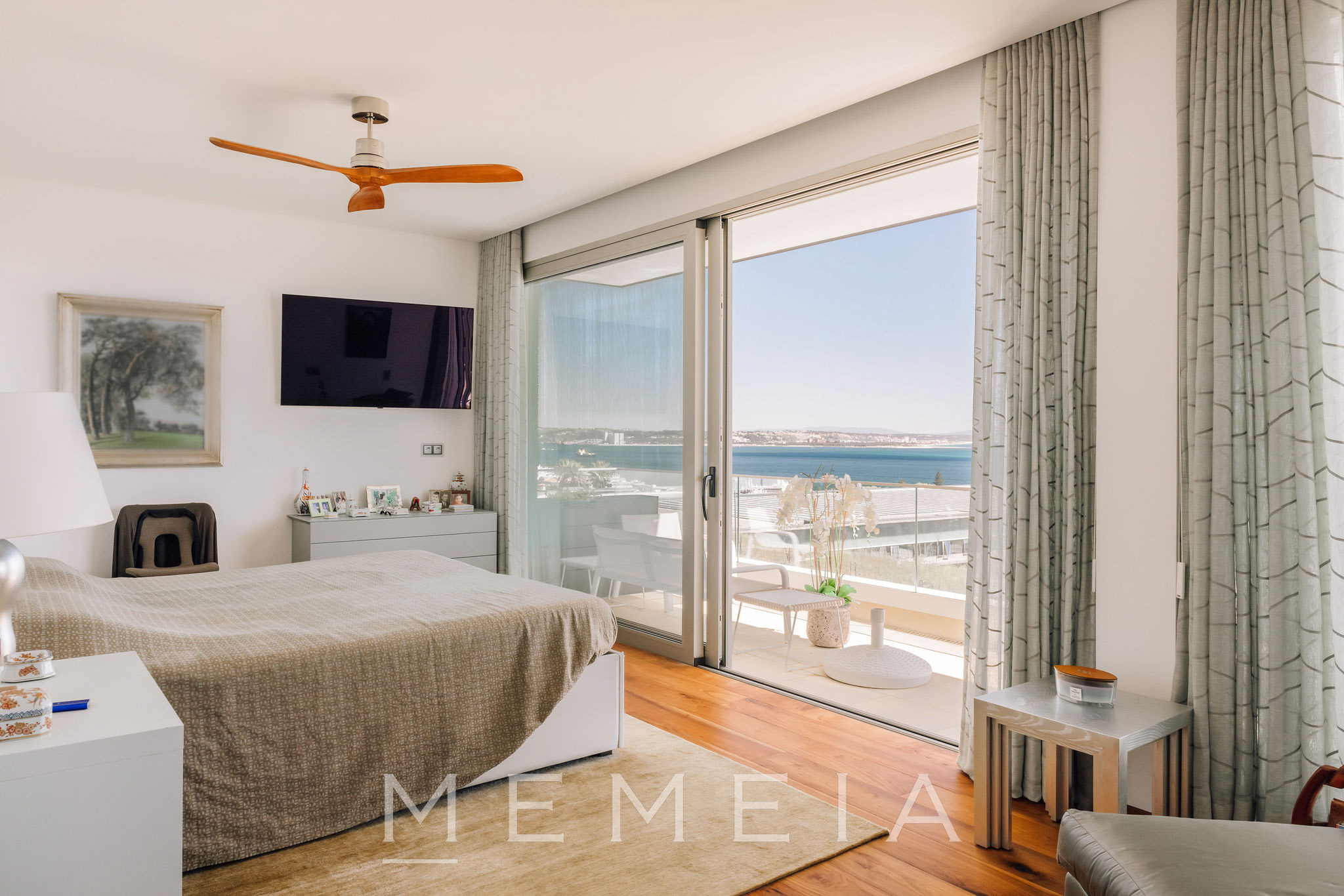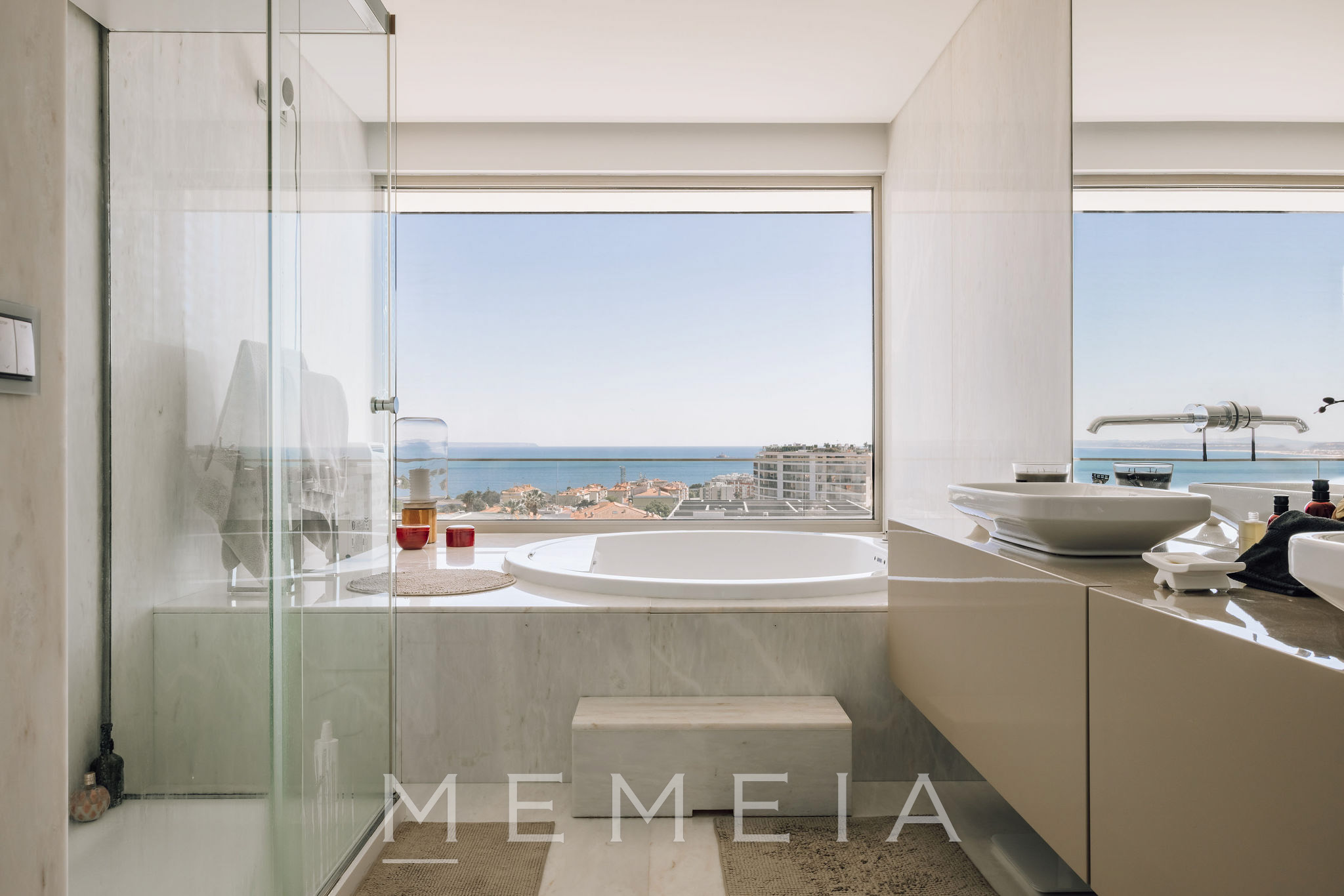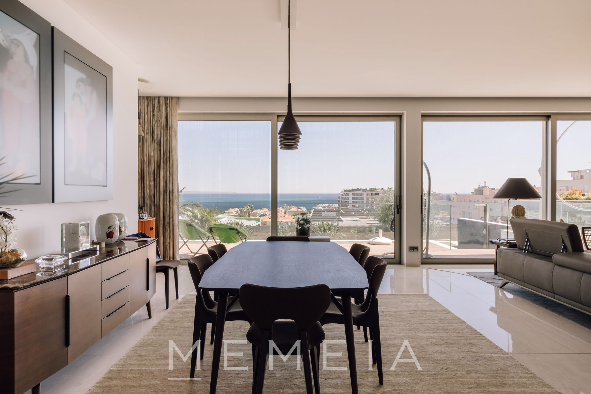 Residência de três pisos com vista para o mar, localizada em Oeiras, a vinte minutos do centro de Lisboa. No piso térreo, a sala de estar e a cozinha em conceito aberto têm acesso direto ao jardim, que dispõe de piscina aquecida, área de churrasqueira e forno a lenha, com áreas bem distribuídas e espaços de lazer integrados ao exterior. As suítes ficam no piso superior, todas com varandas e vista para o mar, incluindo o Farol do Bugio e o Cabo Espichel. No piso inferior, encontram-se a garagem, sala de cinema, academia e adega, compondo uma área dedicada ao lazer e ao apoio residencial. Os interiores utilizam materiais nobres, como mármore de Estremoz e madeira de nogueira americana, garantindo durabilidade e acabamento de qualidade.