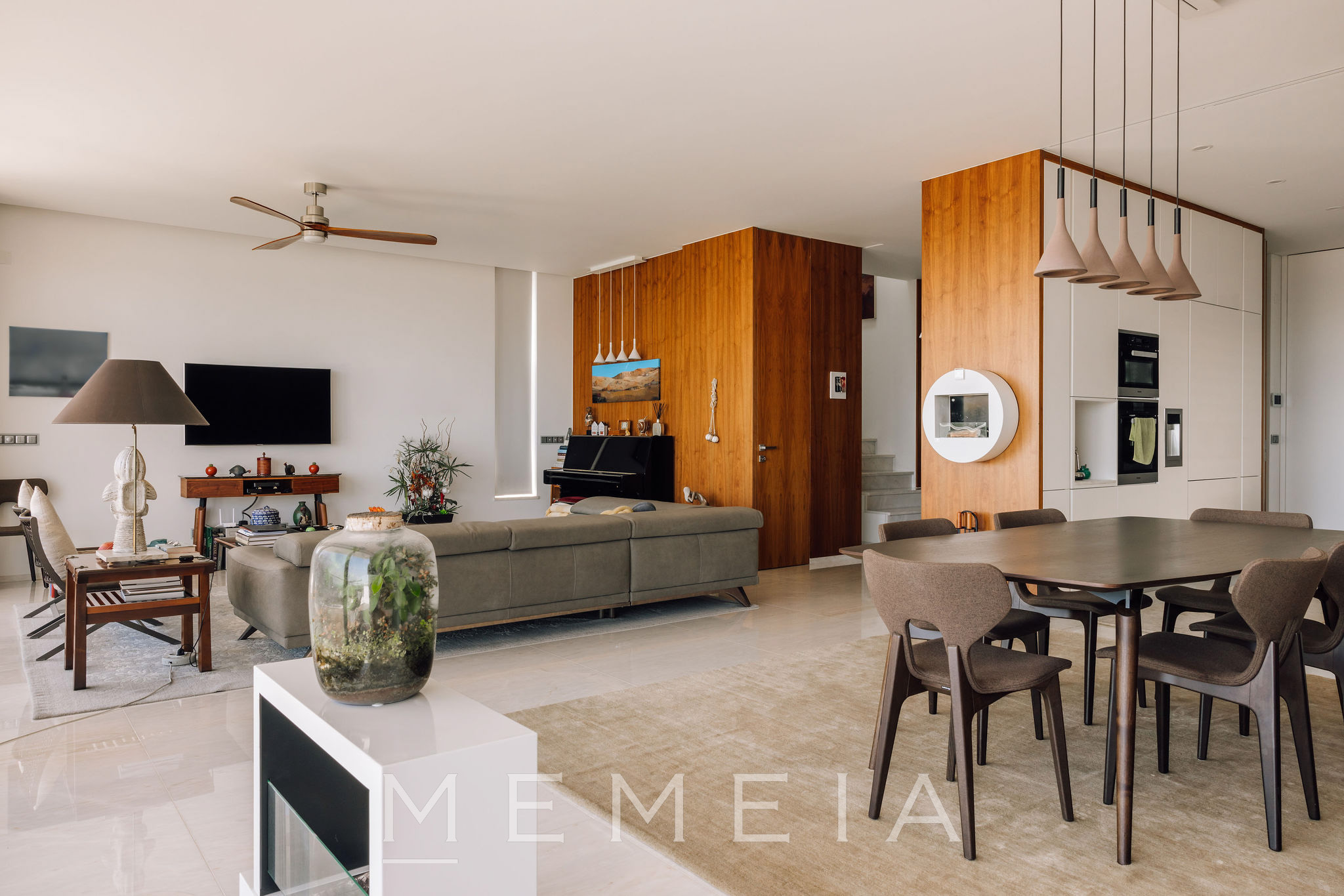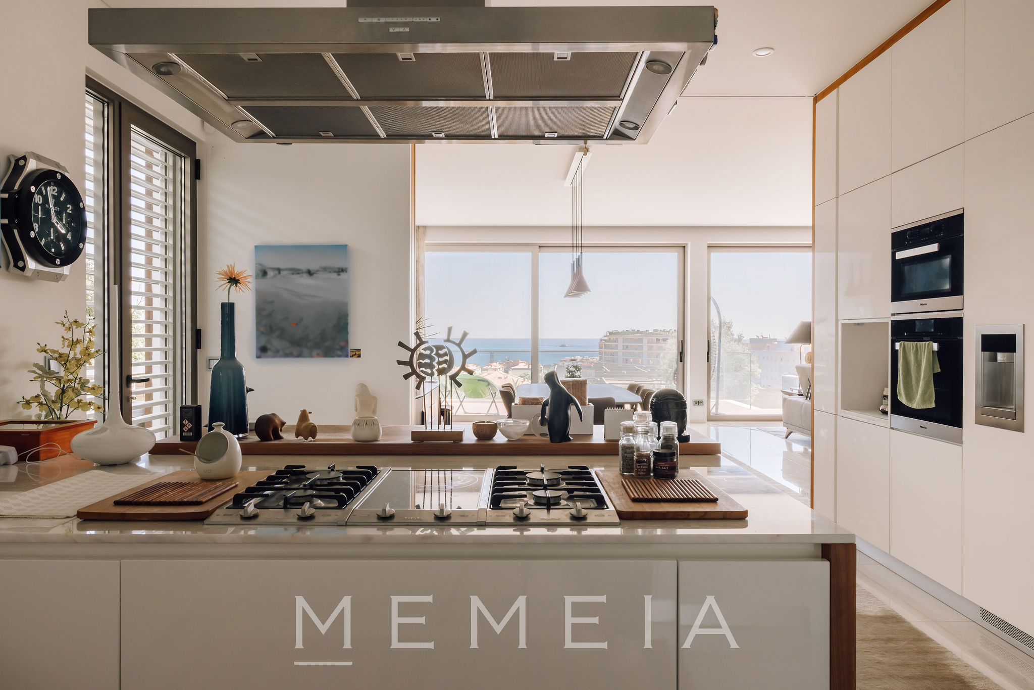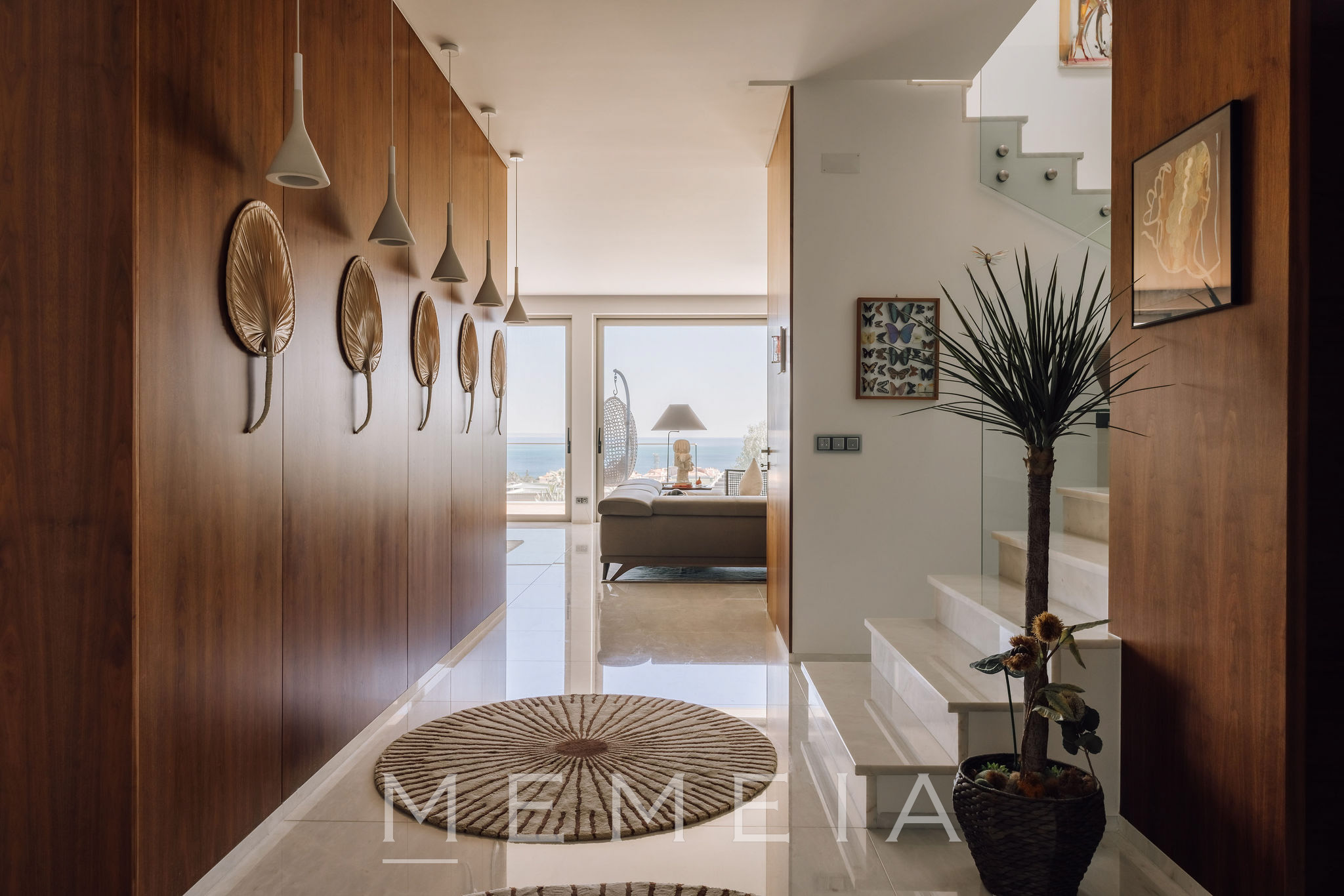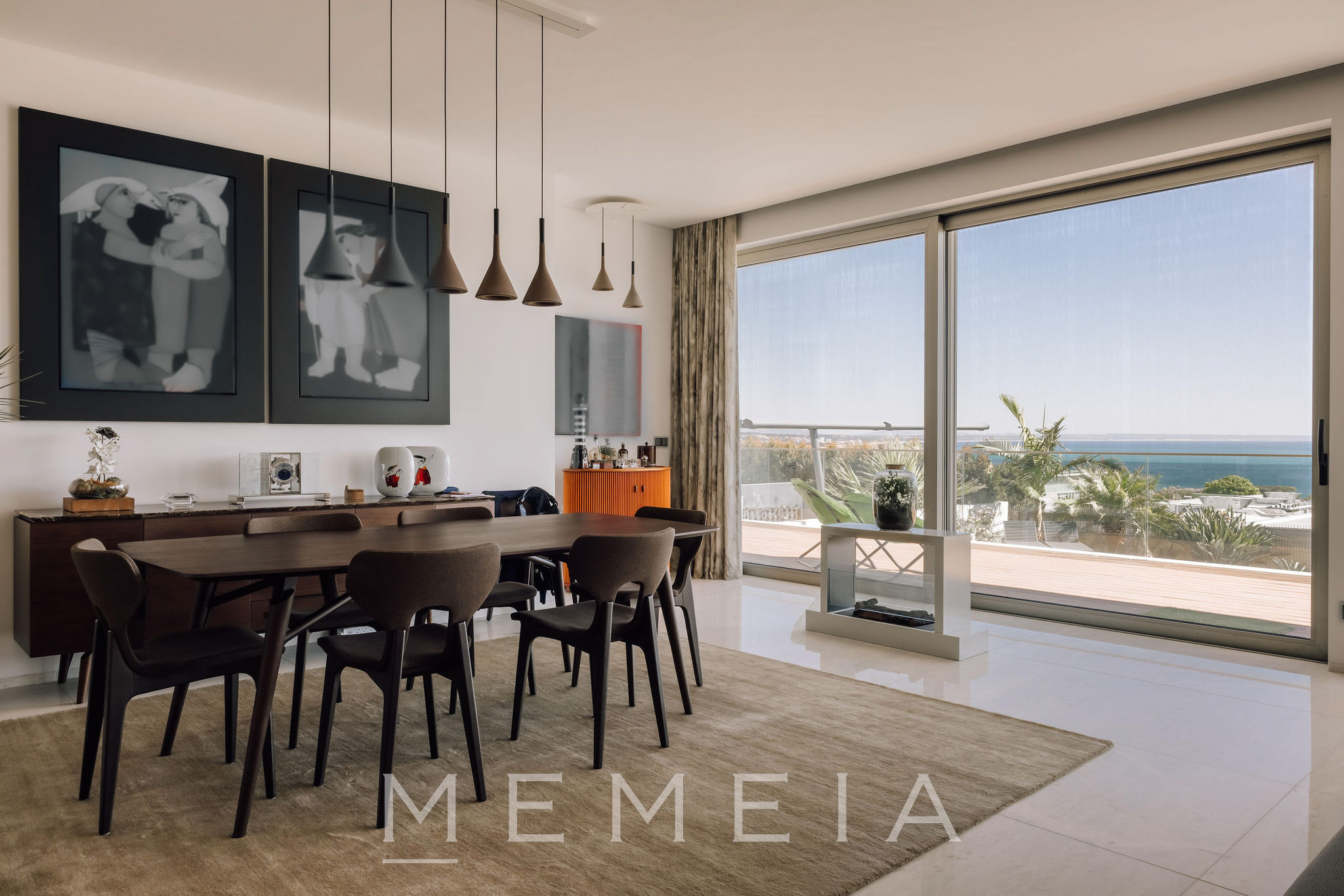 Residência de três pisos com vista para o mar, localizada em Oeiras, a vinte minutos do centro de Lisboa. No piso térreo, a sala de estar e a cozinha em conceito aberto têm acesso direto ao jardim, que dispõe de piscina aquecida, área de churrasqueira e forno a lenha, com áreas bem distribuídas e espaços de lazer integrados ao exterior. As suítes ficam no piso superior, todas com varandas e vista para o mar, incluindo o Farol do Bugio e o Cabo Espichel. No piso inferior, encontram-se a garagem, sala de cinema, academia e adega, compondo uma área dedicada ao lazer e ao apoio residencial. Os interiores utilizam materiais nobres, como mármore de Estremoz e madeira de nogueira americana, garantindo durabilidade e acabamento de qualidade.