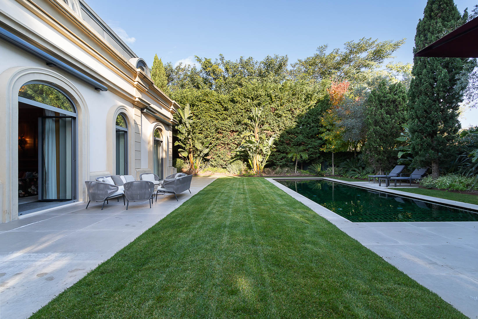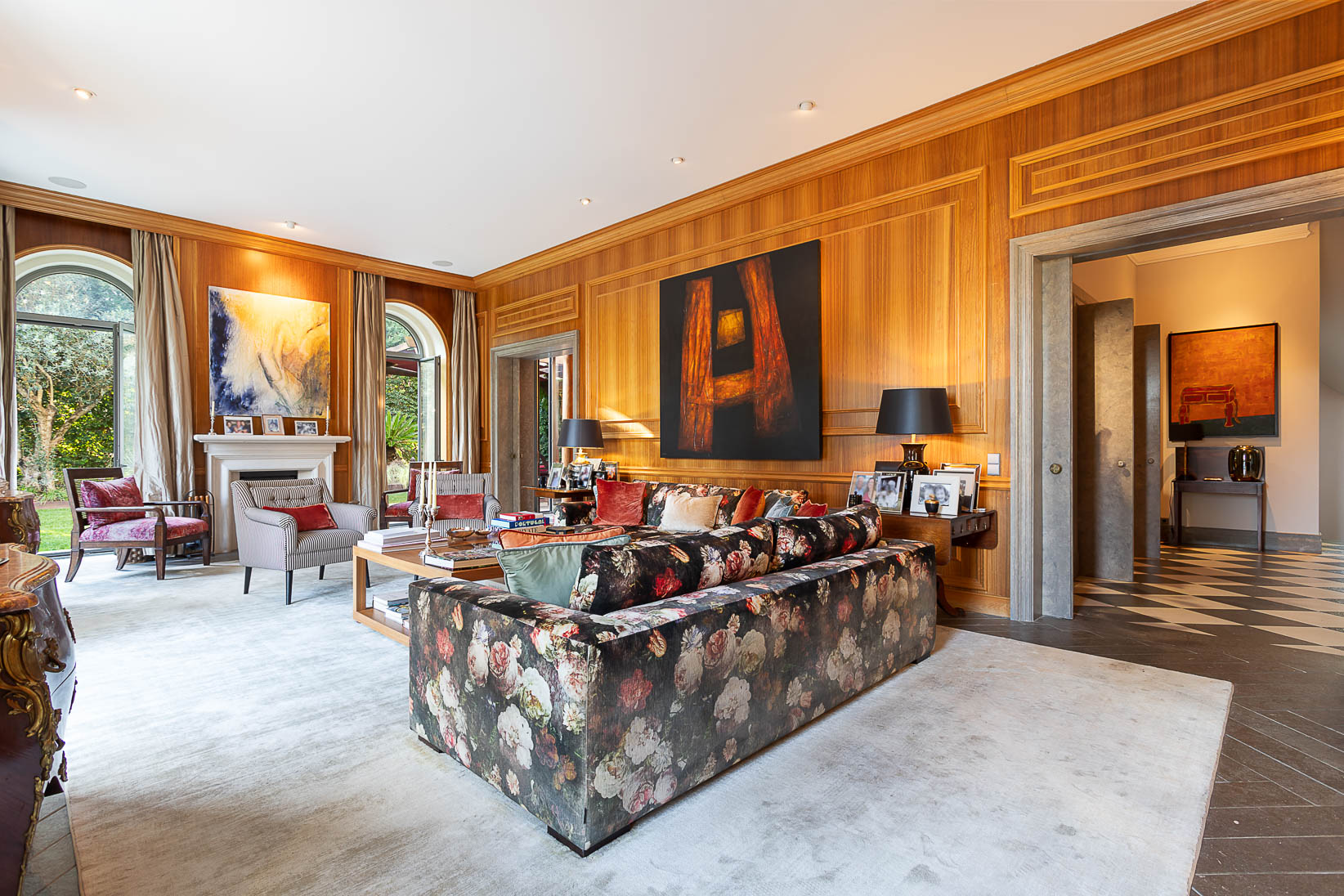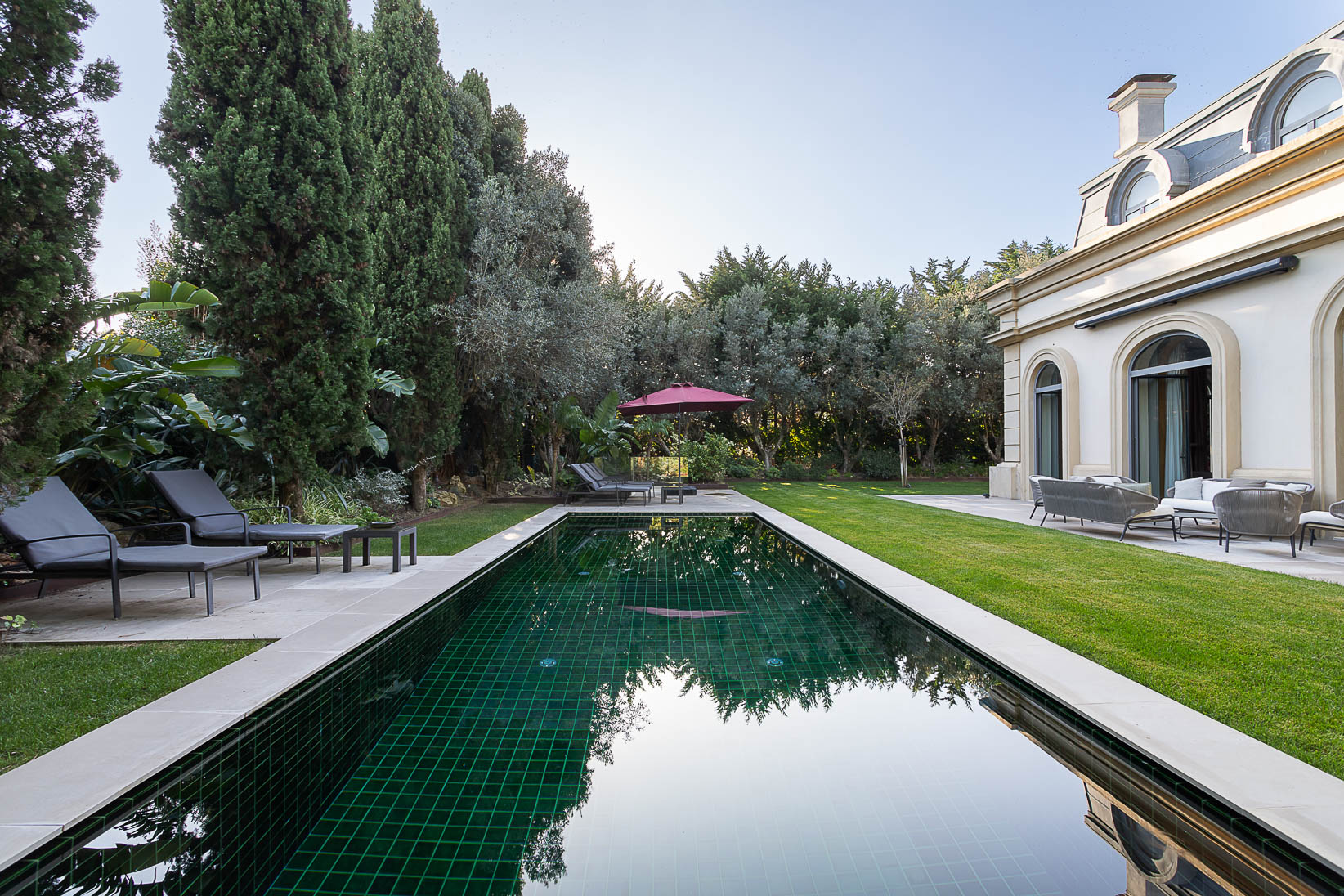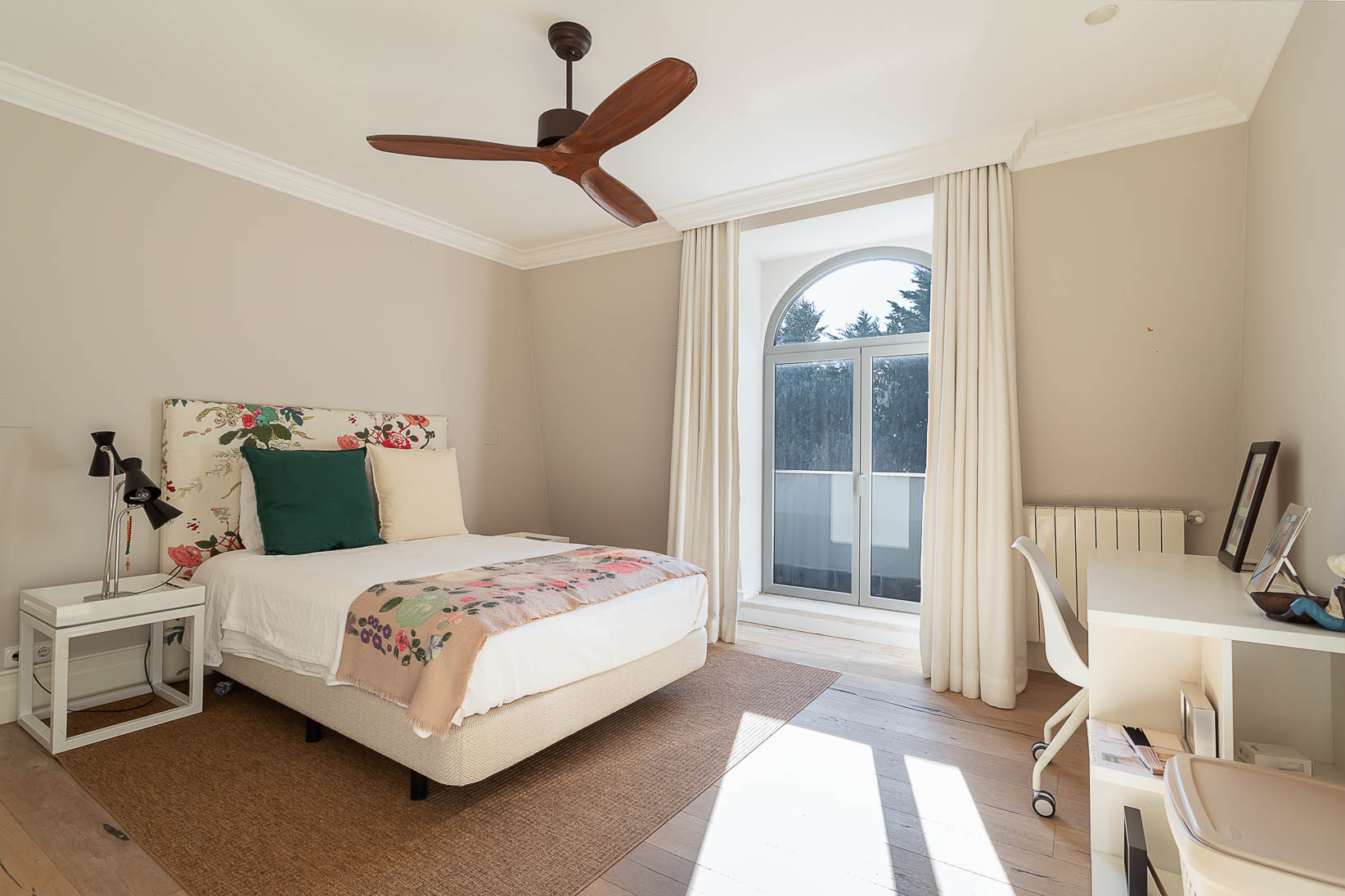 Localizada na Quinta Patino, um dos condomínios mais prestigiados de Cascais, esta residência familiar é distribuída em três pisos, com excelente exposição solar voltada para o sul. A propriedade se destaca pelo amplo jardim privativo com piscina e por áreas internas generosas, adequadas a uma família de maior porte. O pavimento principal é composto por hall de entrada, duas salas de estar, sala de jantar e cozinha, todos os ambientes com acesso direto ao jardim e à piscina, promovendo integração entre os espaços internos e externos. No pavimento superior, encontram-se duas suítes com vista para o jardim e para o mar, além de dois dormitórios adicionais. O pavimento inferior inclui um apartamento independente e uma suíte, oferecendo flexibilidade de uso, privacidade e autonomia, seja para hóspedes, familiares ou apoio residencial. Trata-se de um imóvel completo, inserido em um excelente condomínio, que reúne espaço externo, organização funcional e qualidade de vida em uma das localizações mais valorizadas da região de Cascais.
